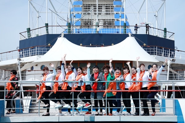 从韩国的龙头岩、日本的城山展望台等风景名胜区,到乐天免税店,浜町商业街;从欣赏陆地风光,了解风土人情,到领略海上风景,享受邮轮上的精彩表演……员工们一路拍照赏景,心情格外愉悦。“能带着家人一起来看国外的世界,真是一件很幸福的事情,平时工作太忙,这次终于能陪陪他们了!”意尔康上海区域营运总监黄金伟,看着身旁的妻儿和母亲,笑得分外爽朗。