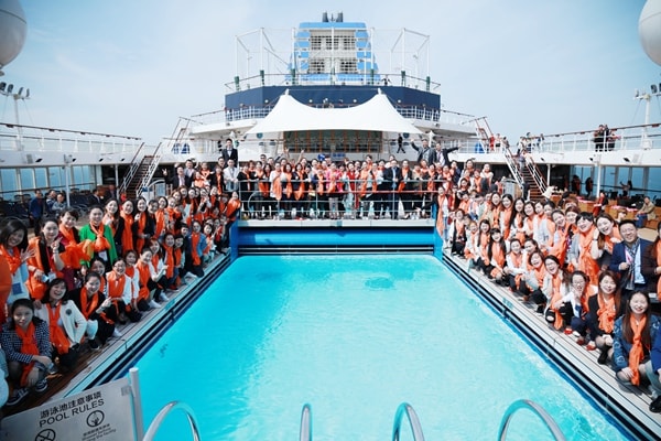 “1、2、3,鞋子!”清脆愉悦的声音穿过甲板,伴着海风飘向远方,一张张笑脸在摄影师的镜头中定格。吨位达71545吨,可容纳上千人的 “天海新世纪号”邮轮上,意尔康上海区域300人的团队格外醒目。