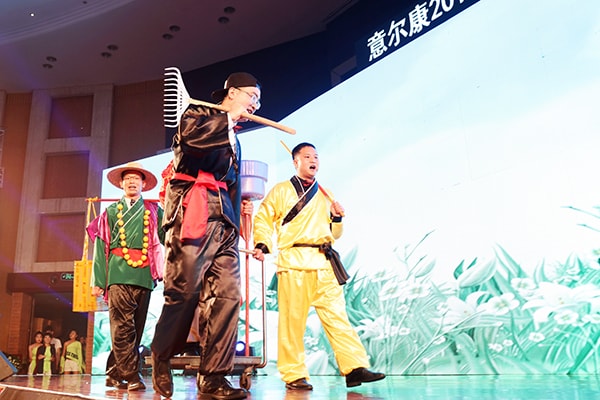 春茗会上,区域员工以部门和片区为单位自编自导了多个节目。幽默小品《大话西游》将制鞋和唐僧师徒西天取经结合在一起,诙谐幽默的表演引人深思;时尚皮具秀,员工们走上T台,摇身成为了最耀眼的模特;脑洞大开的创意环保秀,废弃的海报、鞋盒、胶带等,成为了员工们身上独具特色的潮流元素……台上,节目精彩纷呈,掌声不断;台下,辛勤耕耘了一年的员工们笑谈往昔,热闹非凡。