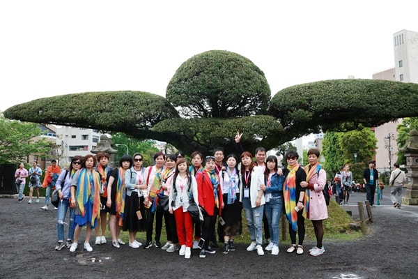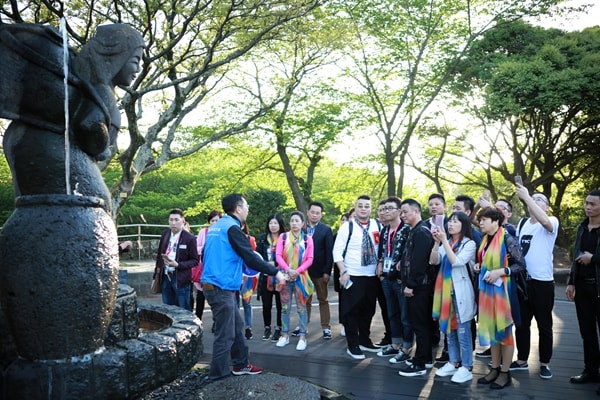 六天时间里,大家先后游览了韩国济州岛、日本长崎平和公园、照国神社、日本鹿儿岛等旅游景点。拍照合影留念、品尝美味食物、购买当地纪念品……湛蓝的海水、独特的异域景观、美味可口的食物,大家兴致高涨,用不同的方式释放着自己的喜悦和激情。