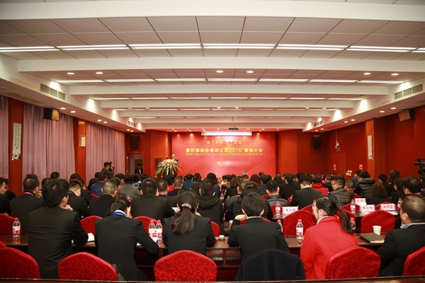会上,公司营销总监李聪作年度营销工作报告。他结合数据总结回顾了2015年营销工作基本情况,指出了各项工作中的不足,并进行 2016年工作部署。公司品牌、市场、运营、信息、供应链、人力资源等各模块负责人分别进行了工作汇报。公司副总经理高权水在讲话中用“山重水复疑无路,柳暗花明又一村”隐喻市场前景,鼓励大家永葆信心。